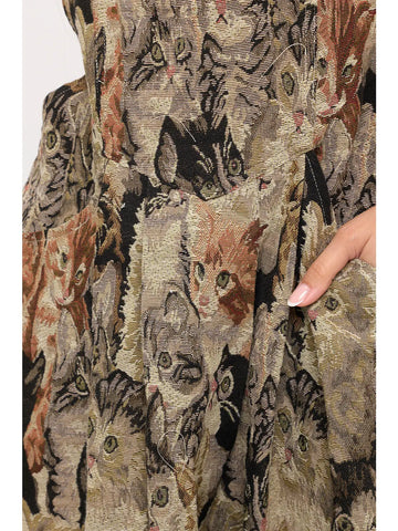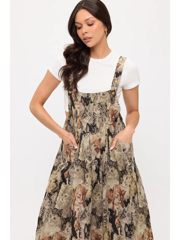 Cat print overall dress95% polyester 5% spandex Cold machine wash, low heat tumble dry
