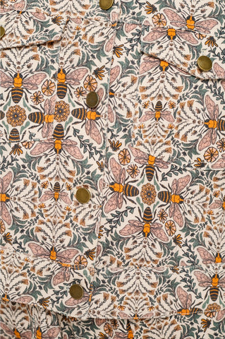 Bee floral print crop jacket 100% cotton Cold machine wash Low heat tumble dry
