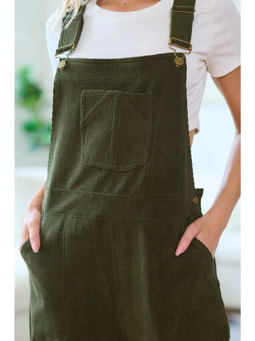 Step into effortless style and supreme comfort with our Classic Corduroy Overalls! Crafted from a sumptuously soft, olive green corduroy, these full-length overalls boast a tactile richness perfect for any season. Featuring adjustable shoulder straps and a modern wide-leg cut, they offer a relaxed fit that's both flattering and easy to wear. Complete with a practical bib pocket and convenient side pockets, these versatile overalls are ideal for layering over your favorite tops, making them perfect for casual outings, errands, or simply unwinding at home.
