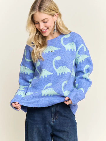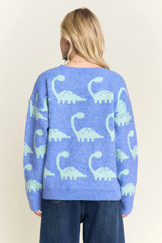 Dinosaur Print Crew Neck Sweater