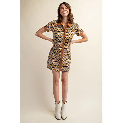 Retro Collared Abstract Mini Dress